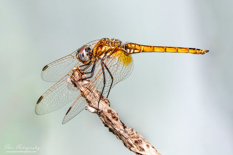 The Violet Dropwing (Trithemis annulata) is a large, fast-flying dragonfly native to southern Europe. They are called 'dropwings' because of their habit of immediately lowering their wings after landing on a perch. Males of this species are violet-red with red veins in the wings, while females are yellow and brown and both sexes have red eyes.