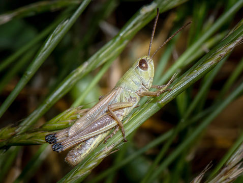 The Meadow Grasshopper (Pseudochorthippus sp.) is a common, widespread grasshopper found throughout the non-arid grasslands of Europe. Formerly classified under the genus Chorthippus, it has been categorised into the Pseudochorthippus genus.